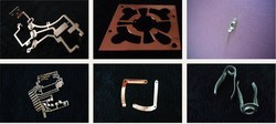 Lead frames are manufactured by removing material from a flat plate of copper, copper-alloy, or iron-nickel alloy like alloy 42. Two processes used for this are etching (suitable for high density of leads), or stamping (suitable for low density of leads).